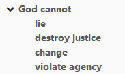 Title the note “God cannot violate our agency” and tag it “God cannot:Violate agency”. Use this for the master note or create your own.