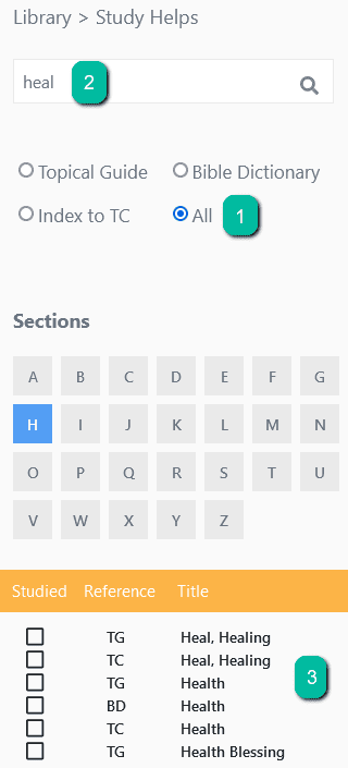 study helps healingFor me, the 2 best ways to start a study of a topic are either turning to the Study Helps like the Topical Guide, or just digging in and doing word searches on the scriptures.