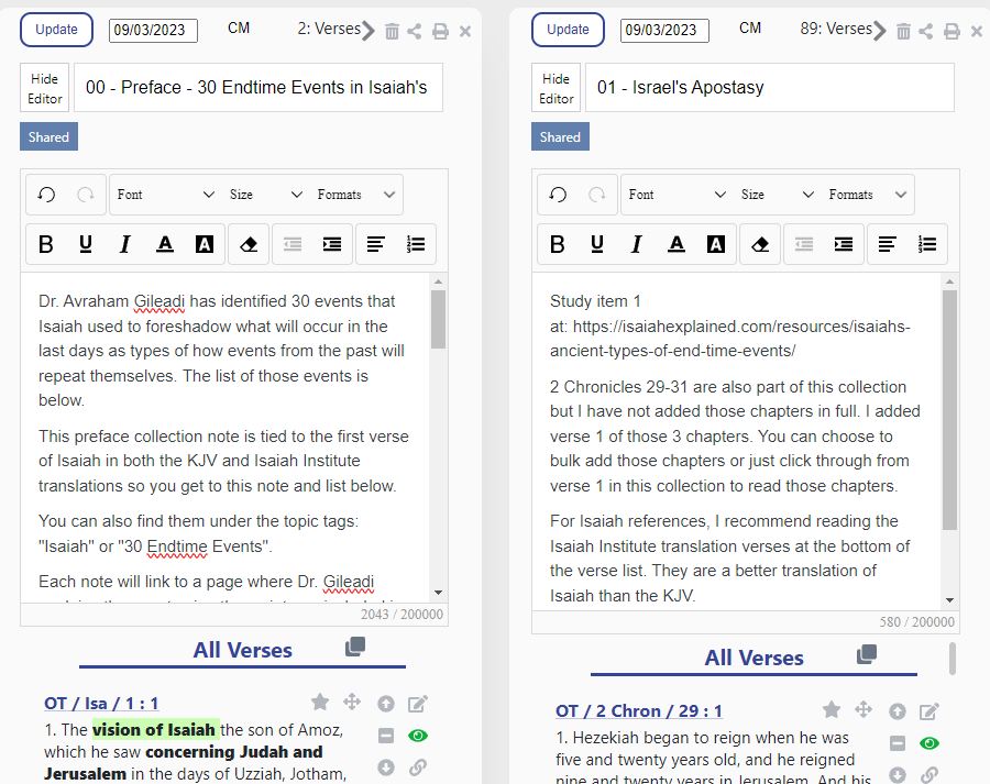 In the video below, I show how powerful it is to study Isaiah using Scripture Notes. The last blog post called “Isaiah’s 30 End-time Events” shared 30 collection notes you can download and save to your own Scripture Notes account. They accompany Avraham Gileadi’s commentary on the events, so you can go through each of them, reading the commentary, reading the scriptures, and making notes in the collection note.