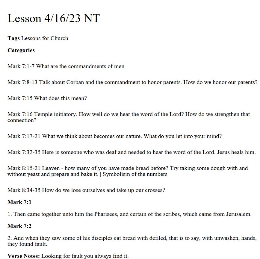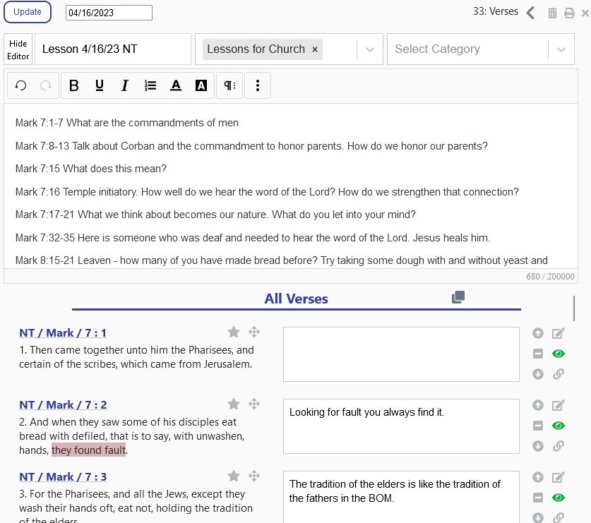 4c) Click the print report button at the top of the collection note pane to print out your lesson outline with verses and notes below it.