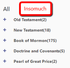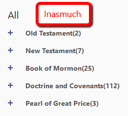 One of the words that jumped out at me while studying for this presentation was the word “inasmuch.” I don’t remember which of a couple verses I was reading in when this word jumped out at me, but when it did, I opened a search pane and did a search for it. Here’s the results I found.