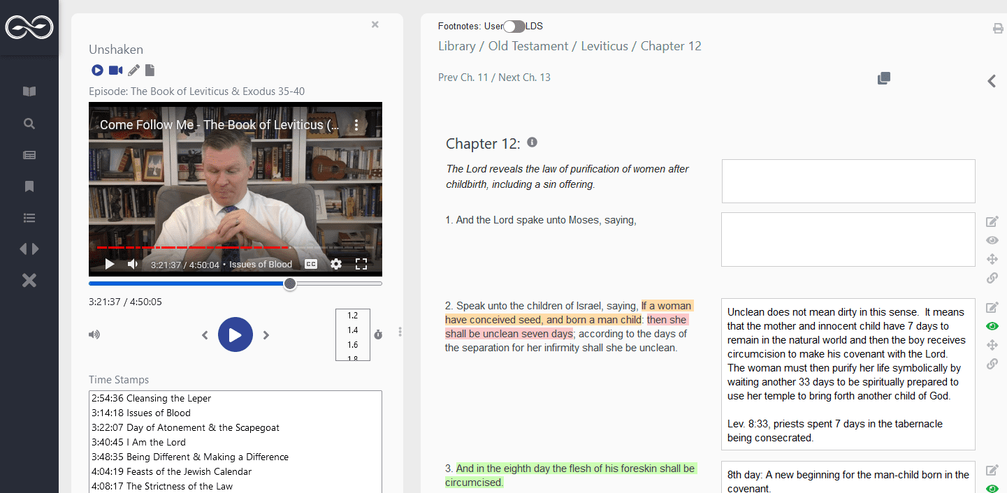 While listening to Jared Halverson’s Unshaken podcast on Leviticus (nearly 5 hours long!) I’m so edified by the amount of content he is covering and the insights and connections he’s making. I heartily recommend listening to it even if you don’t do it within Scripture Notes so you can take notes by your scriptures while you listen.